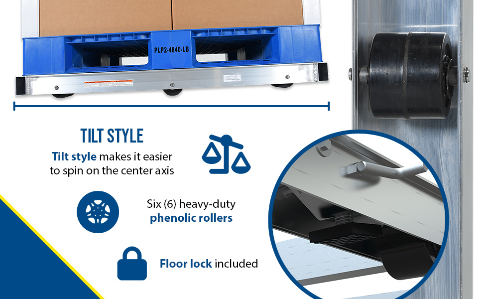 DOL-4248-6T-FL DOL-4248-6T-FLAluminum Pallet Dolly With Tilt & Floor Lock 42 In. x 48 In. 4,000 Lb. Capacity SilverUniform Static Capacity (lb.): 4,000