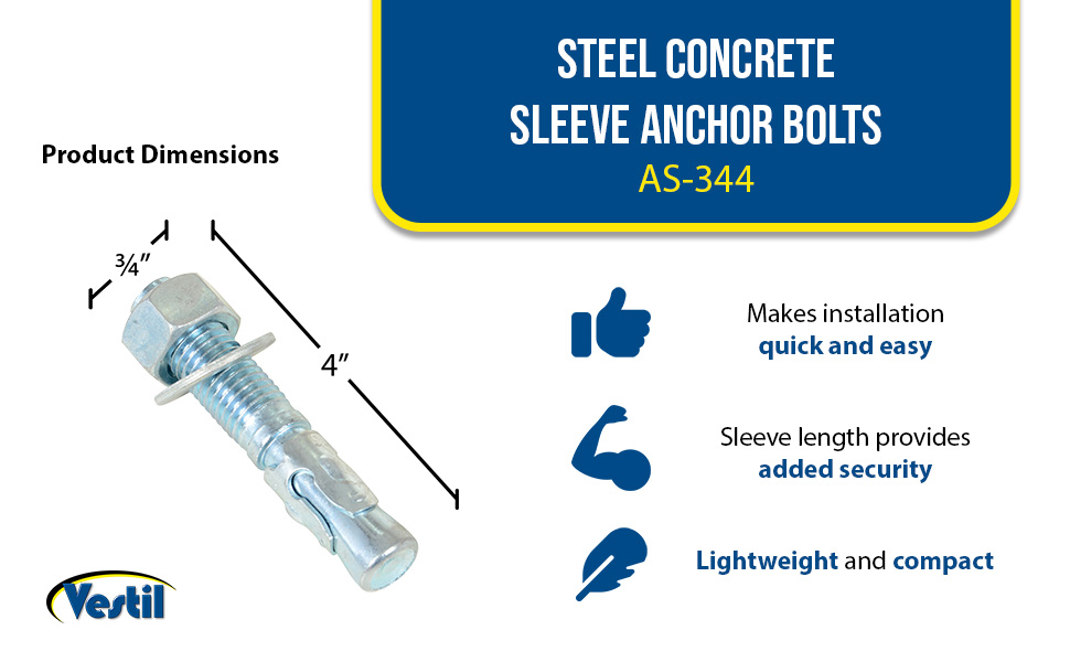 | Steel Concrete Sleeve Anchor Bolts 12 Pack 3/4 In. x 6 In. Silver | Package (qty.): 12 Sleeve Length (in.): 3 | 6 |