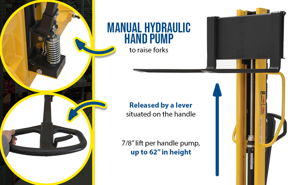 | Stacker Manual Pump 3 - 35 In. 2,000 Lb. Capacity Black / Yellow | Uniform Capacity (lb.): 2,000 Service Range (in.): 3 to 35-1/2 | 764 |