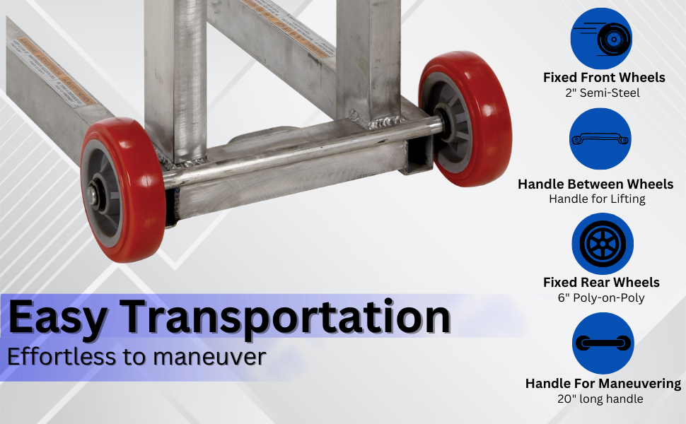 ALLPH-500-FW ALLPH-500-FWAluminum Low Profile Lite Load Lift With Foot Pump and Fixed Wheels 20 In. x 20 In. Platform 400 Lb. Capacity SilverUniform Capacity (lb.): 400
