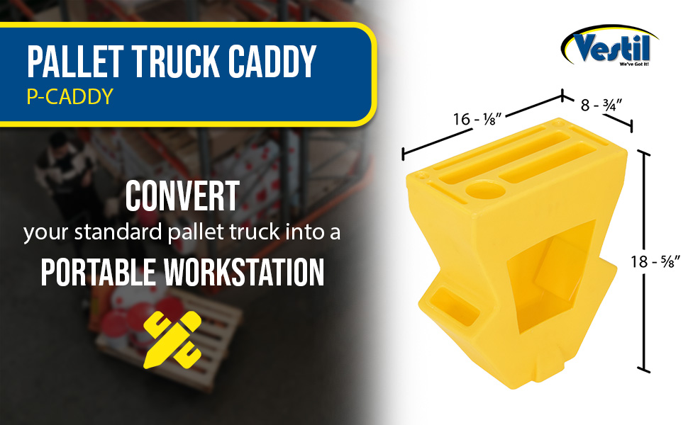 P-CADDY P-CADDYVirgin LDPE Pallet Truck Caddy 8-3/4 In. x 16-1/8 In. x 18-5/8 In. YellowBrand / Model Compatibility: Pallet Trucks