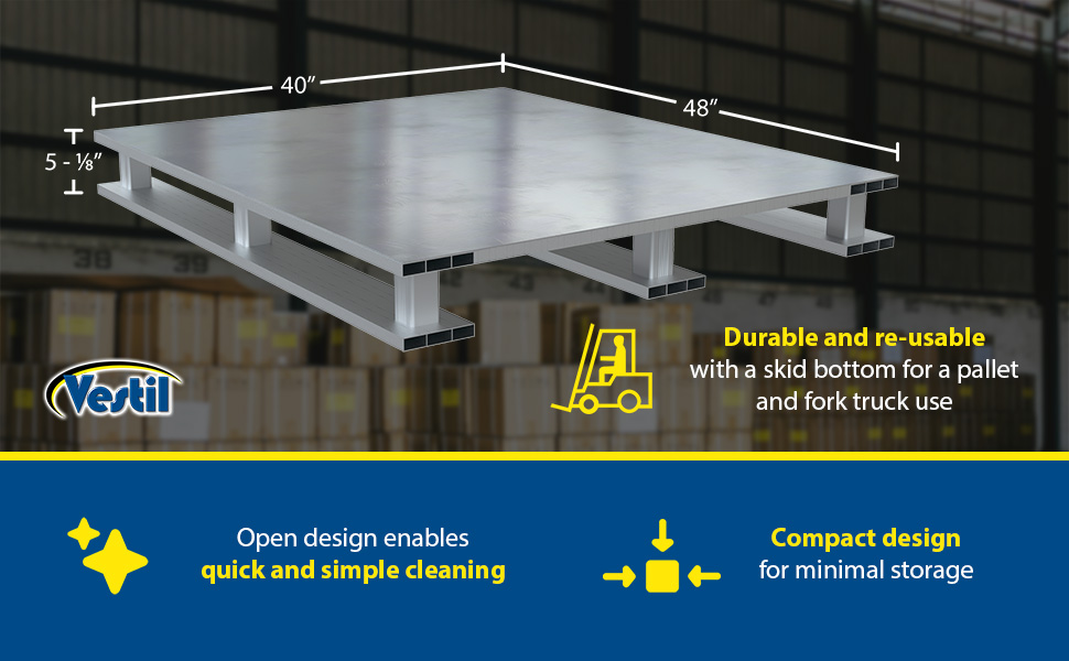 | Aluminum Heavy Duty Solid Top Pallet 48 In. x 40-1/8 In. x 6 In. 6000 Lb. Capacity Silver | Static Capacity (in.): 6,000 Dynamic Capacity (in.): 4,000 | 113 |