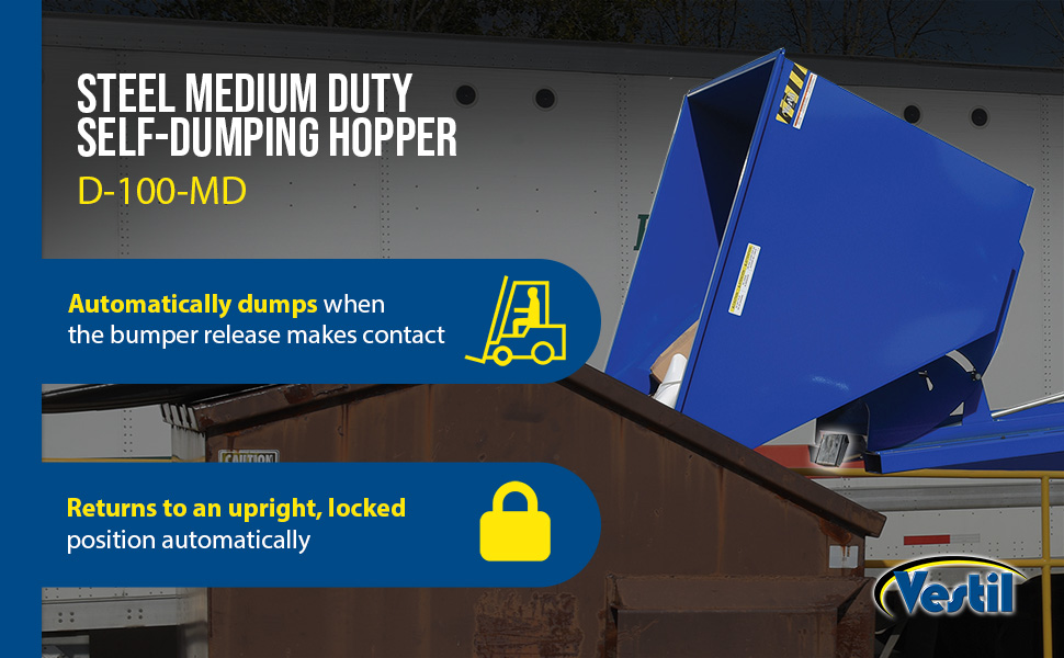 D-50-MD D-50-MDSteel Medium Duty Self Dumping Hopper 1/2 Cubic Yard 4000 Lb. Capacity BlueUniform Capacity (lb.): 4,000