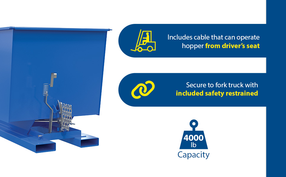 D-100-MD D-100-MDSteel Medium Duty Self Dumping Hopper 1 Cubic Yard 4000 Lb. Capacity BlueUniform Capacity (lb.): 4000