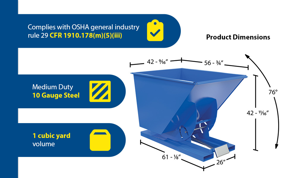 D-100-HD D-100-HDSteel Heavy Duty Self Dumping Hopper 1 Cubic Yard 6000 Lb. Capacity BlueUniform Capacity (lb.): 6000