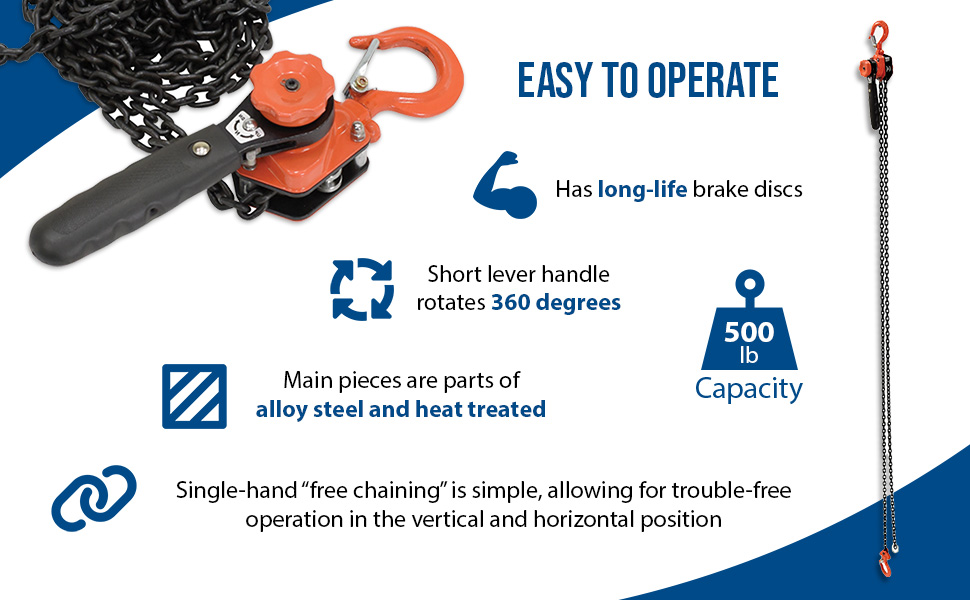 ELH-05-10 ELH-05-10Steel Mighty Mini Lever Hoist 10 Ft. Chain Length 500 Lb. Capacity OrangeUniform Capacity (lb.): 500