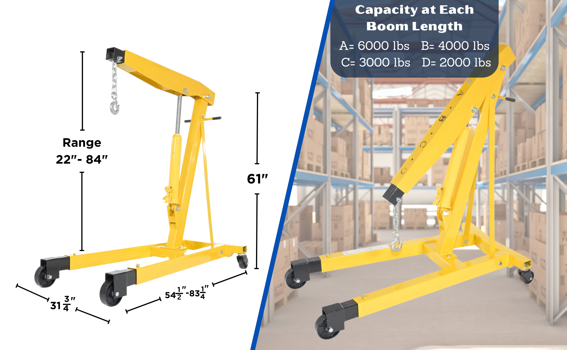 EHN-20-C EHN-20-CSteel Shop Crane Engine Hoist with Folding Legs 2000 Lb. Capacity YellowUniform Capacity (lb.): 2,000