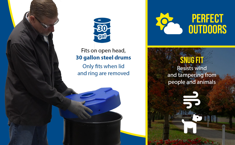 DC-P-30-CAN-BU DC-P-30-CAN-BULow-Density Polyethylene Drum Recycling Lid 30 Gallon BlueWorks With Steel Drum (gal.): 30