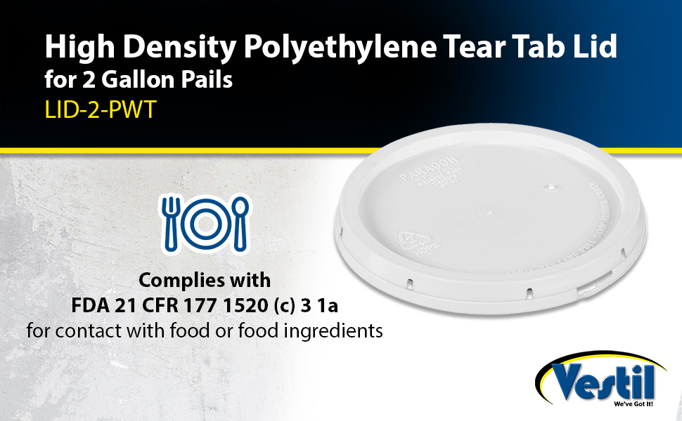 LID-2-PWT LID-2-PWTHigh Density Polyethylene 2 Gallon Tear Tab Lid WhiteAccommodating Pail Size (gal.): 2