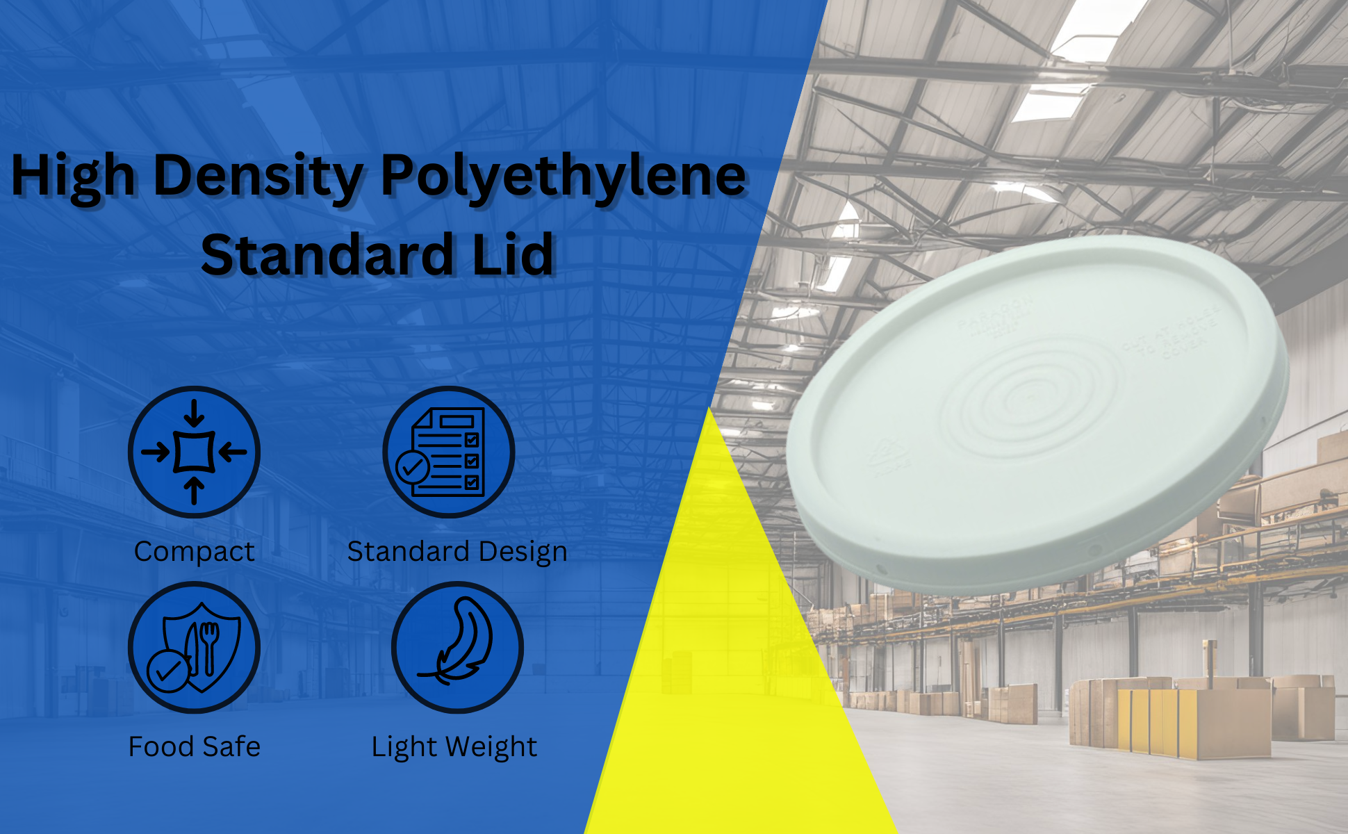 LID-54-PY LID-54-PYHigh Density Polyethylene 3-1/2, 5 and 6 Gallon Standard Lid YellowAccommodating Pail Size (gal.): 3.5 , 5, 6