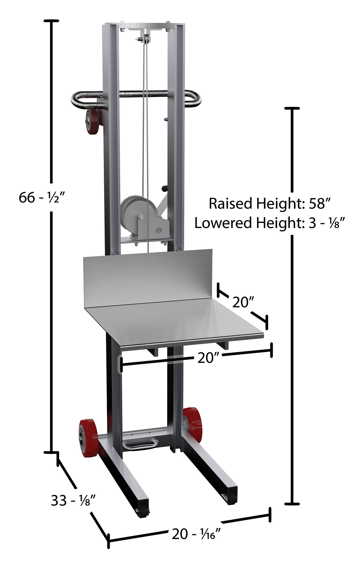 Aluminum Lite Load Lift With Winch and Fixed Wheels 20 In. x 20 In. Platform 400 Lb. Capacity Silver