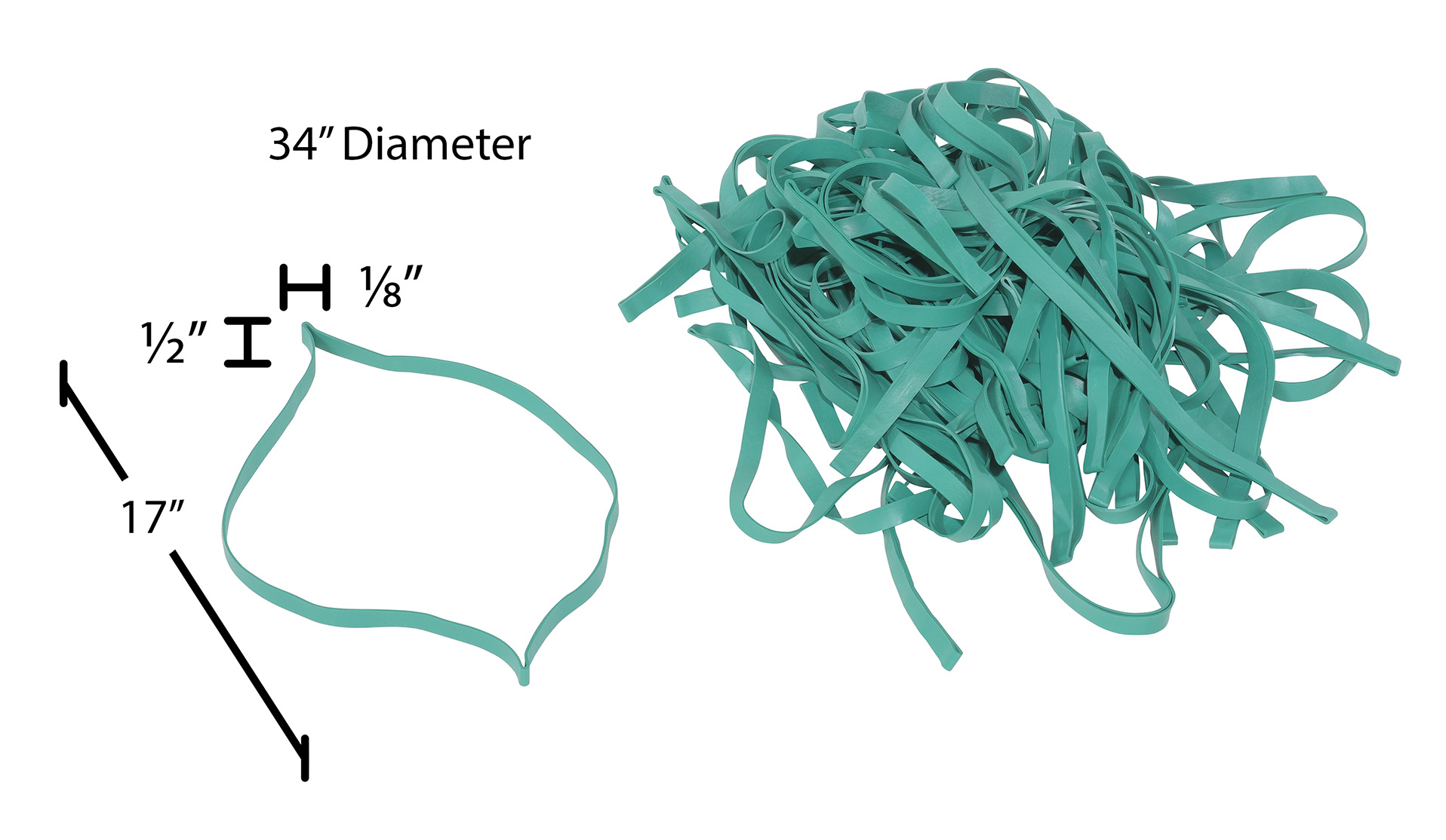 Natural Rubber Latex Jumbo Drum Bands 34 In. Diameter 50 Count GreenThe drum band is used to help secure drum liners. Unit is cost effective and environmentally friendly.