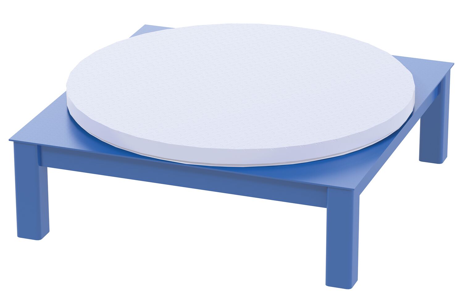 Optional elevated base for the manual carousel helps maintain products at an elevated height. A square design with four legs,one in each corner, for stability.