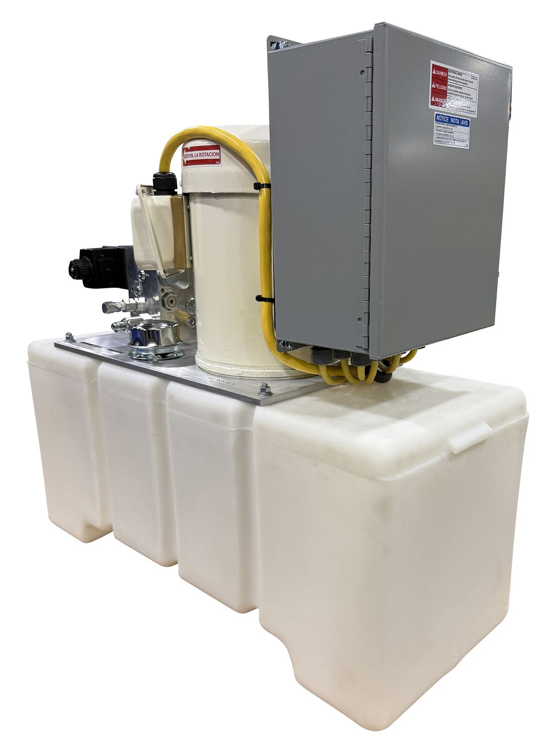 Wash-down motor & NEMA four (4) enclosure. The wash down feature provides an enclosure for the electrical apparatuses to minimize the exposure to wet or corrosive substances. This option is best when used with warm or cold non-caustic low corrosive solutions, applied at a low pressure in an indoor environment. Please be aware, this wash-down feature does not eliminate the possibility of rust on unpainted surfaces or fasteners.