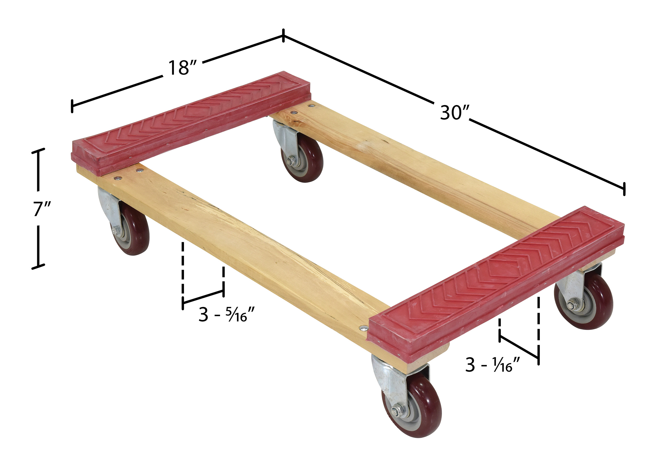 Hardwood Dolly Rubber Ends 30 In. x 18 In. x 7 In. 1200 Lb. Capacity TanThe Hardwood dolly transports boxes, crates, or supplies. Unit maneuvers on casters. Optional pull strap or hook available.