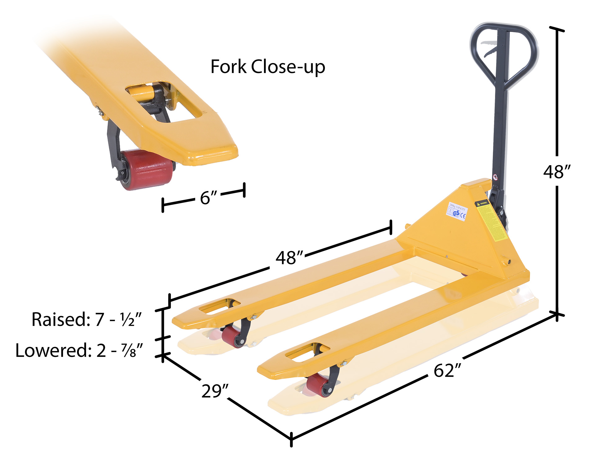 Steel Economy Pallet Truck Hand and Foot Release 62 In. x 29 In. x 48 In. 4,400 Lb. Capacity Yellow