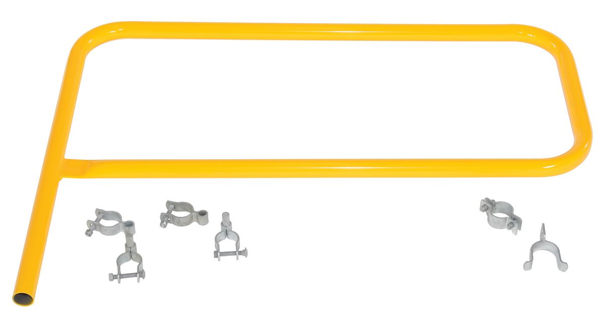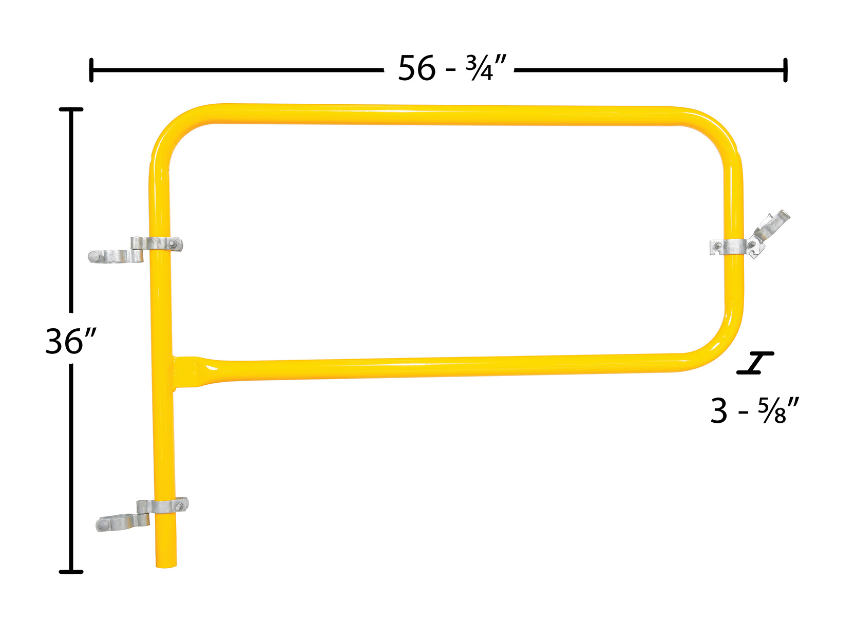 The steel gate works great as an addition to the pipe safety railing. The steel construction is durable and visible with a yellow finish. Hardware for simple installation is included.