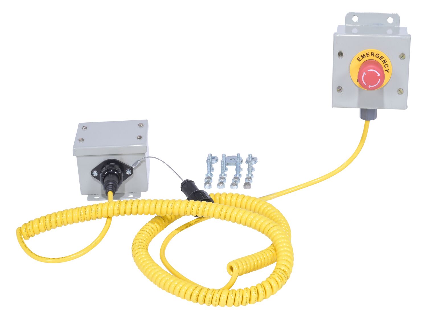 The emergency stop button kit is great for the distribution and shipping facilities. The unit allows the operator to shut off the fork truck power from the work platform. The unit is designed to work on gas powered fork trucks, and can be adapted to work on electric or diesel fork trucks. When installed, simply push in on the emergency stop button to immediately stop the unit.