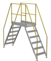 In industrial settings, every inch of floor space matters. With the installation of a cross over ladder, all floor space is able to be utilized fully. An aluminum construction and simple mounting, the ladder can be placed in a permanent location to best fit the floor layout. Serrated steps give the user sure footing going up and down the ladder, while the handrails give added security. Mid and top rails give balance and safety support to users while on the upper platform. Hardware is included. Handrail is powder coated yellow for increased visibility.
