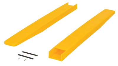 Prevent damage to packages and skids from sharp edges of fork truck forks with blunt end Fork Blade Protectors. Hide unsightly scratches and gouges on your forks as well. Constructed from lightweight 100% polyethylene material. Simply slide over forks. Held in place with a clevis pin and cotter pin.