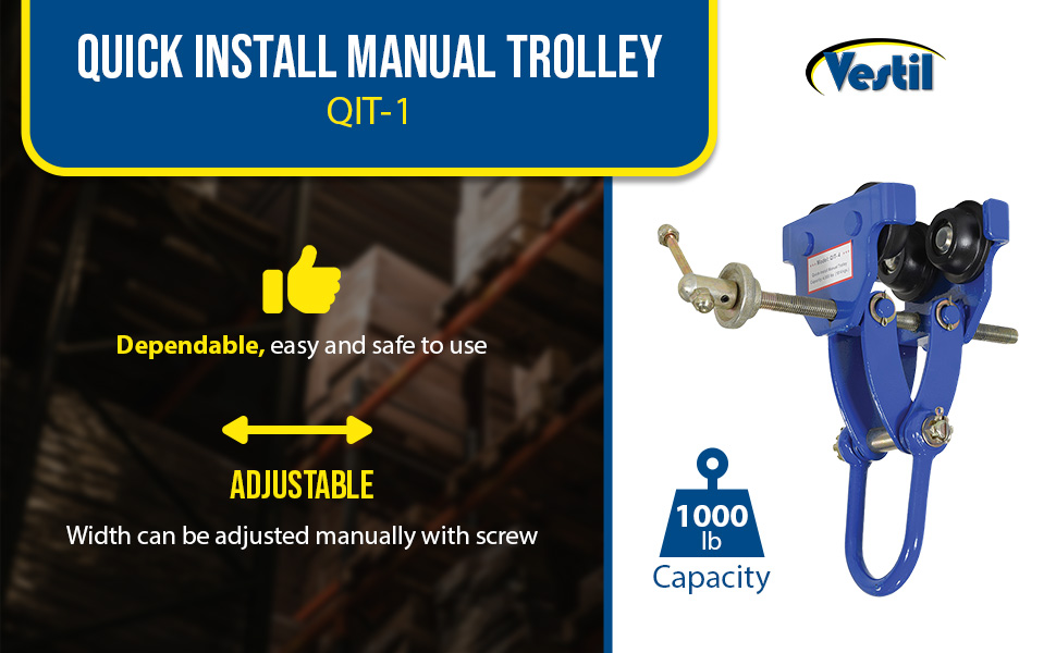 QIT-10 QIT-10Steel Quick Install Manual Trolley 13-5/8 In. x 20-3/16 In. x 20-3/8 In. 10000 Lb. Capacity BlueUniform Capacity (lb.): 10,000