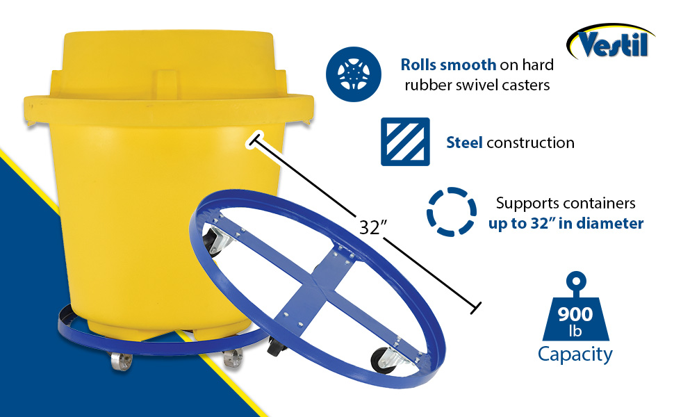 DRUM-SP-32-9-H DRUM-SP-32-9-HSteel Over Pack Drum Dolly 32 In. x 32 In. x 5-7/8 In. 900 Lb. Capacity BlueUniform Capacity (lb.): 900