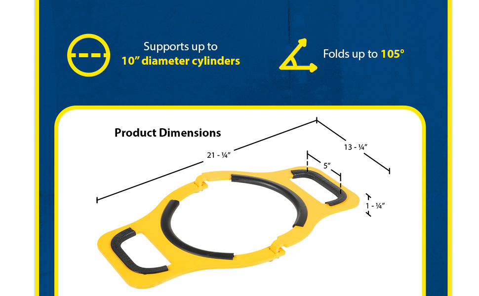 CYL-M-10 CYL-M-10Steel Manual Cylinder Lifter 10 In. Maximum Cylinder Diameter 200 Lb. Capacity YellowUniform Capacity (lb.): 200