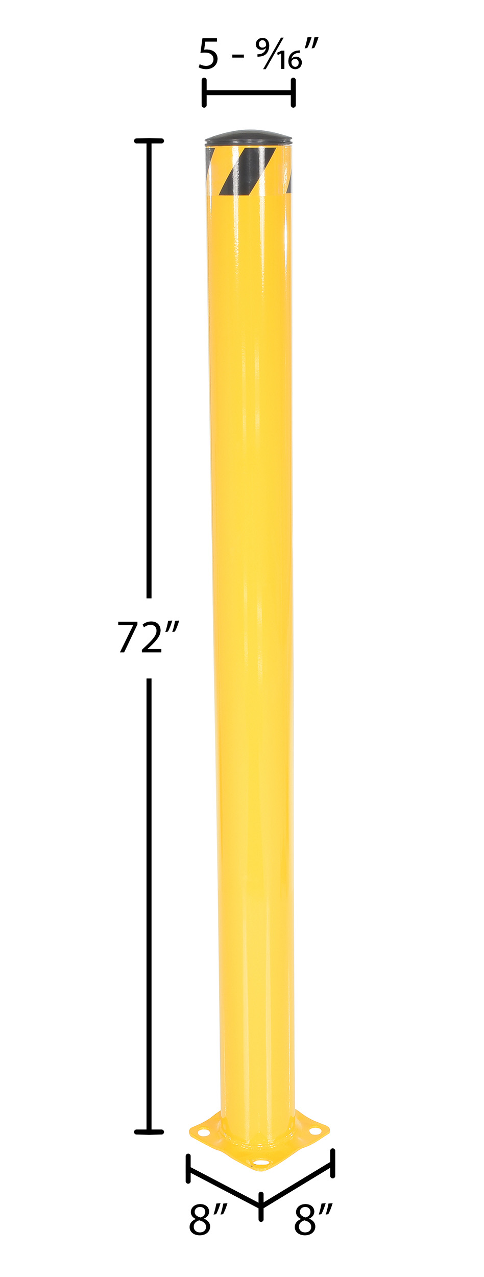 Steel Pipe Safety Bollard 72 In. x 5-1/2 In. YellowSafety bollards protect both objects and personnel. With a robust design the bollard can be used in a variety of settings, while enduring harsh conditions. Cap is removable and made of plastic. Powder coat finish for baked in added toughness.