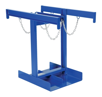 Steel Cylinder Caddy 4 Maximum Cylinders 800 Lb. Capacity BlueA Cylinder caddy transports cylinders safely with this fork mounted style. This unit comes complete with safety chains to secure the cylinders in place.
