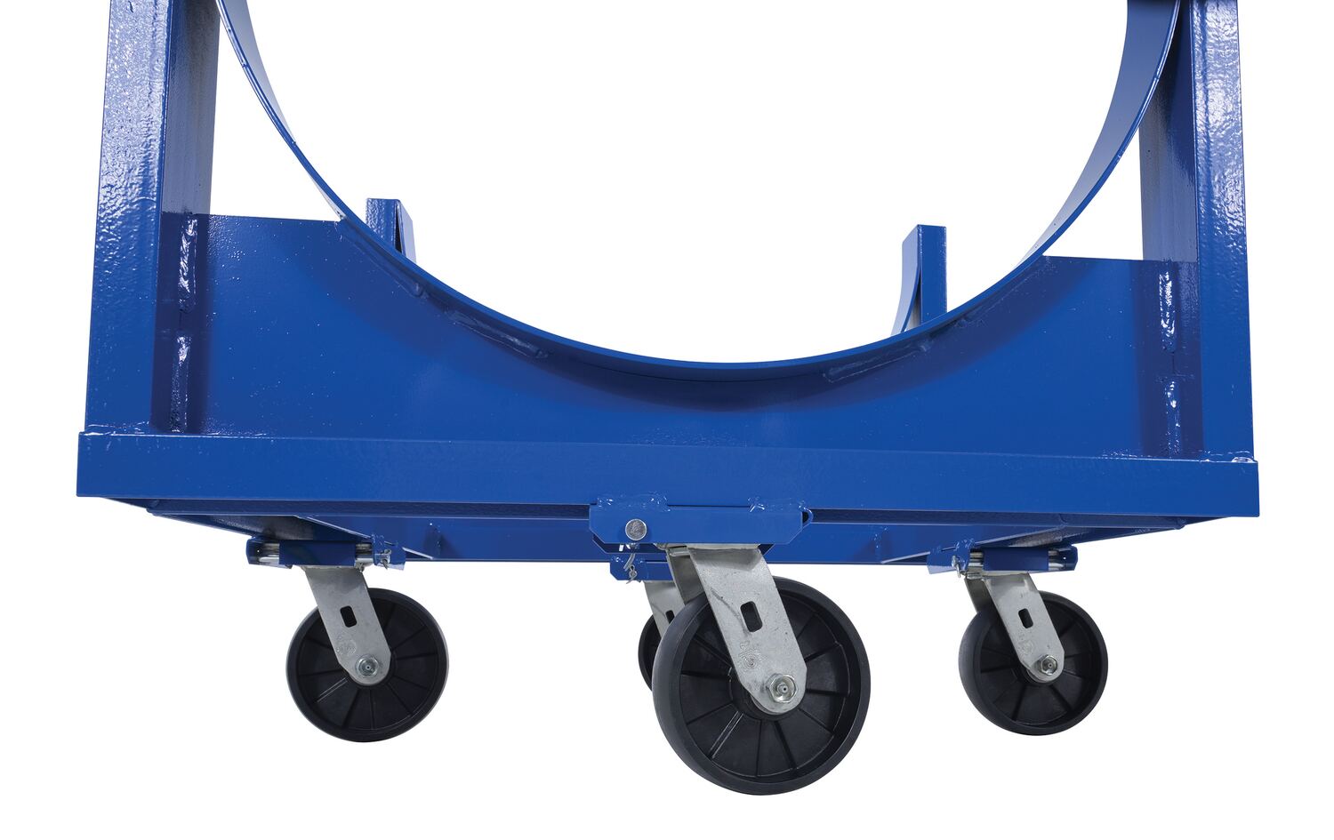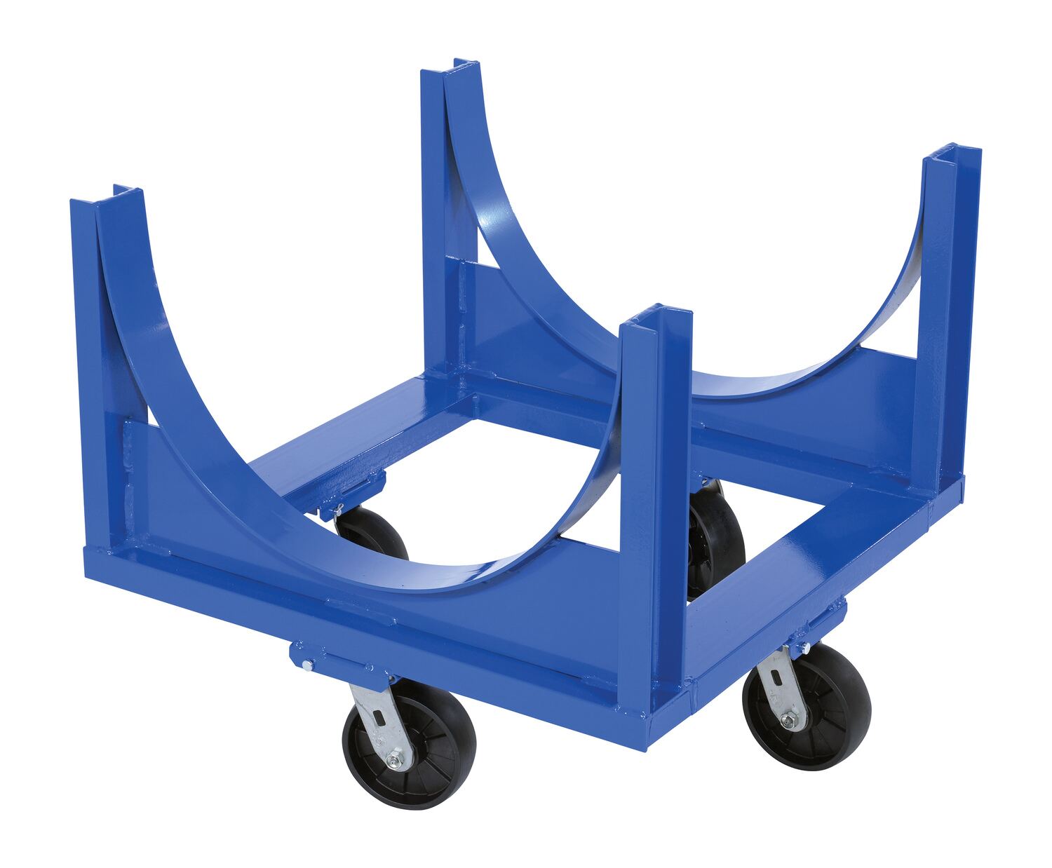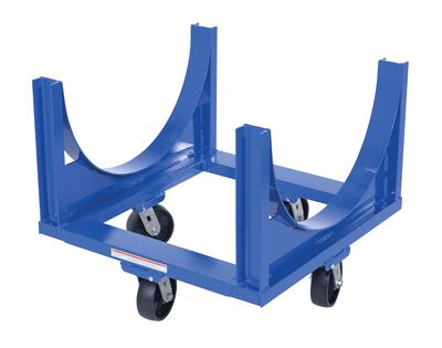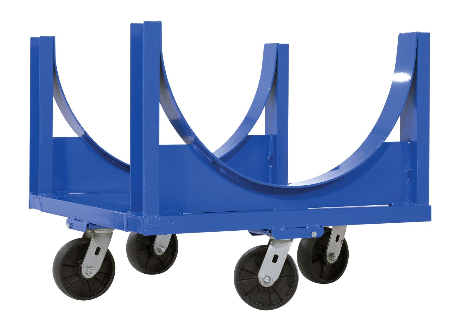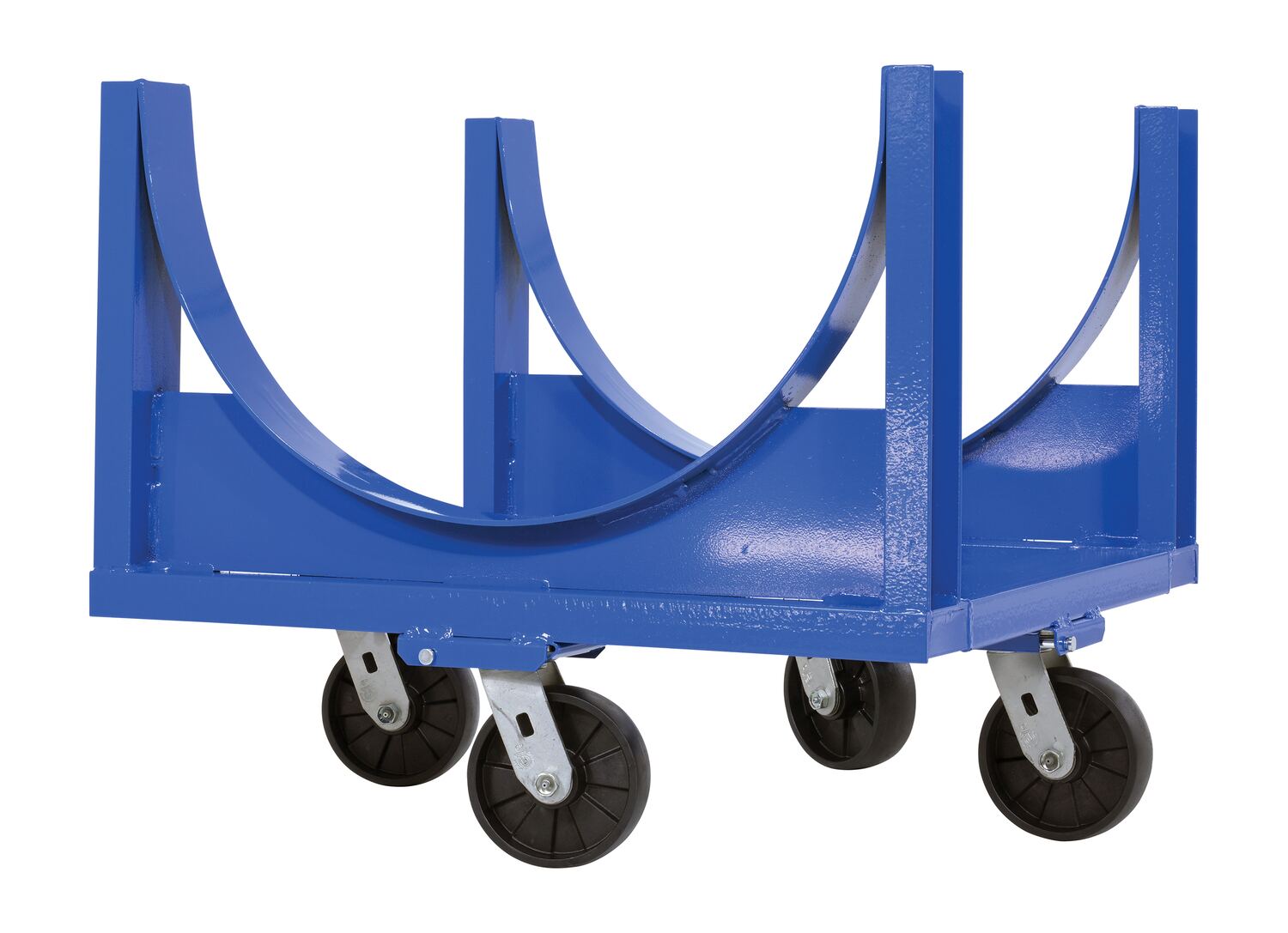 Move and store pipe, channel, bar stock, barrels, or drums with this Heavy Duty cradle cart. A large open design that makes loading and unloading by fork trucks and slings easy. All welded construction. Wheels are mounted in a diamond pattern to allow the truck to tilt when going over thresholds and turn about on its own center. Lightweight Aluminum cradle cart fits all small to medium loads. Powder coat finish standard on steel cart.