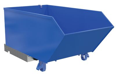 Steel Light Duty Low Profile Self Dumping Hopper 1/3 Cubic Yard 2000 Lb. Capacity BlueThe Light Duty Low Profile 90 degree self-dumping steel Hopper feature a full ninety (90) degree dump angle with a cushioned rubber bumper stop. The low profile design is essential for convenient loading. Dumping with a fork truck is quick and simple. A cable is pulled from the seat of the fork truck to dump the hopper. The unit returns to an upright and locked position when lowered to the ground. Fork pockets are 22" long and are capped on the end to allow for 90 degrees dump. The included safety restraint/chain must be securely attached to the lift truck carriage without slack. Models with same overall width may be stacked. For example, models H-25 may be stacked with H-50’s, the H-100’s can be stacked with H-150’s, while the H-200 hoppers can only be stacked with other H-200 series models. Never stack hoppers more than 3 high.