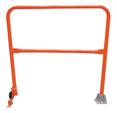 Steel Dock Safety Swing Gate 4 Ft. Length OrangeEconomical safety swing gates are an economical way to protect people from dock falls. Durable railings are constructed from schedule 10 pipe (1-5/8" O.D.). Units have a top rail height of 46-1/4" and a 25" mid-rail. 4" poly-on-poly wheel allows units to be swung out of the way. Cast single socket is included.